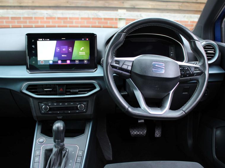 ***FOR VIEWINGS AND TEST DRIVES CALL US ON 01747692736 TO BOOK AN APPOINTMENT***Low mileage high spec Arona automatic fitted with Seat's 1.0 turbo petrol ULEZ compliant engine producing an impressive 50 mpg combined finished in stunning blue metallic with specification including half leather and suede interior with heated seats, rear parking camera, media unit with satellite navigation and DAB radio, apple carplay meaning you can mirror the apps from your phone onto the media screen of the car such as Google maps bluetooth, media connections, air conditioning, auto lights, cruise control, upgraded diamond cut alloy wheels, roof rails and more, only 29000 miles, service history, high up driving position with easy access in and out of the cockpit as well as loads of boot space with the seats up and down***PART EXCHANGE AVAILABLE***USE THE FINANCE CALCULATOR ON OUR WEBSITE dealer's website AND QUOTE YOURSELF A MONTHLY PAYMENT FIGURE TODAY WITH ZERO DEPOSITS AVAILABLE***