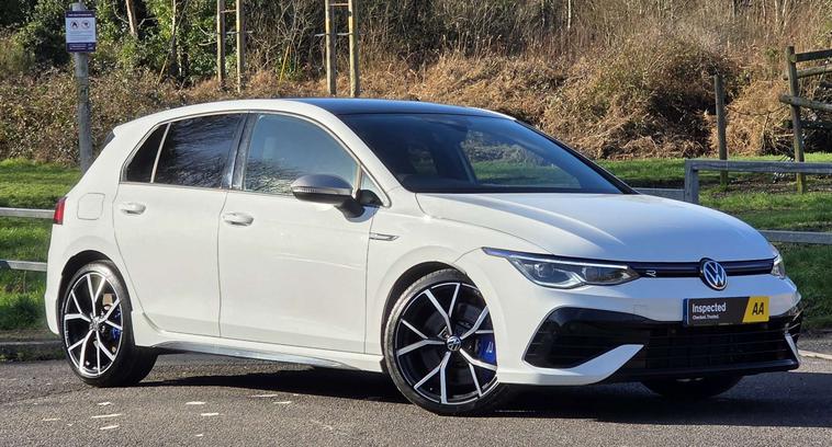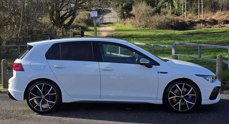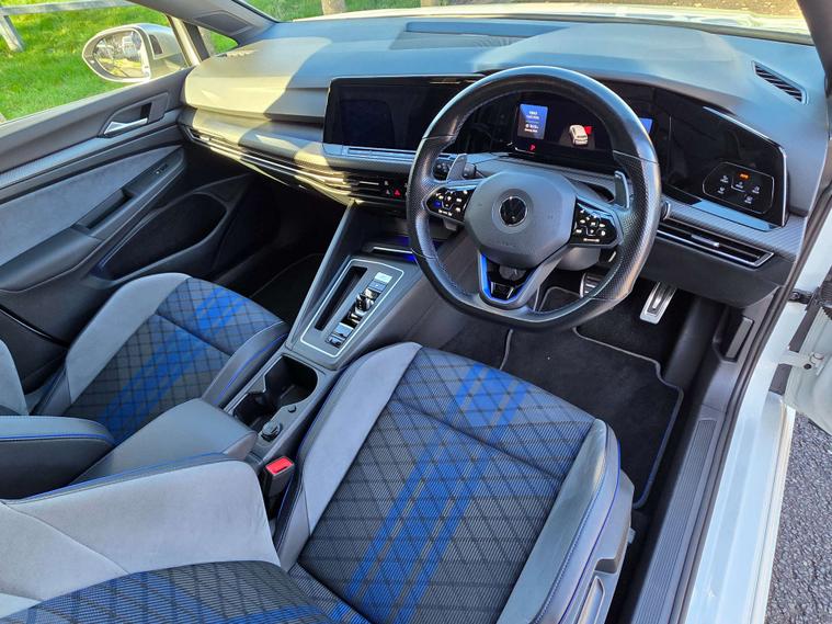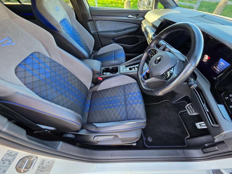 This stunning example of the superb Golf R is finished in White Metallic with a black roof, 19 inch Diamond Polished Alloys (with Goodyear tyres) and Grey / Blue Leather and Alcantara "R" Embossed seats!