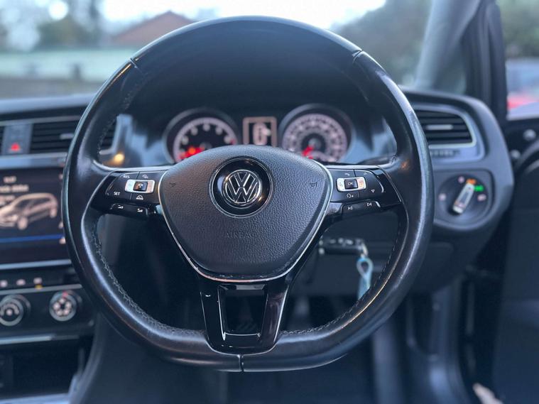 Golf SE Nav TSi BlueMotion Technology edition / 3 previous owners / Manual / 123 bhp This 2017 Volkswagen Golf TSI SE Nav offers a superb blend of practicality and technology, making it an excellent choice for everyday driving. Powered by a 1.4 litre Euro 6 compliant petrol engine, this model benefits from a generous boot space, perfect for luggage or shopping. The SE Nav trim comes equipped with a host of useful features designed to enhance your driving experience, including front and rear parking sensors with parking assistance, and adaptive cruise control for effortless motorway journeys. Additionally, the dusk sensor automatically activates the headlights, while the convenience pack further enhances usability. For your comfort, manual air conditioning is also included.