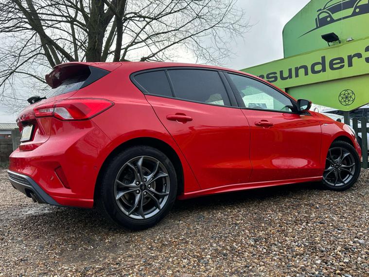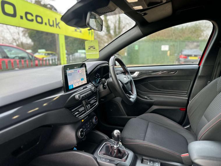 Focus ST-Line / Manual / 73, 200 / new mot /1 previous owners/This 2019 Ford Focus T ST Line offers a compelling blend of style and practicality, making it an excellent choice for those seeking a reliable and well equipped hatchback. Powered by an efficient 1.0 litre petrol engine, this Euro 6 compliant model ensures a lower environmental impact with its low CO2 emissions. Inside, you'll find the intuitive Ford SYNC system, complete with an 8 inch TFT touchscreen that seamlessly integrates Android Auto and Apple CarPlay for your entertainment and navigation needs. The cabin also features manual air conditioning for your comfort, and automatic headlights that adjust to changing light conditions, adding to the overall convenience.