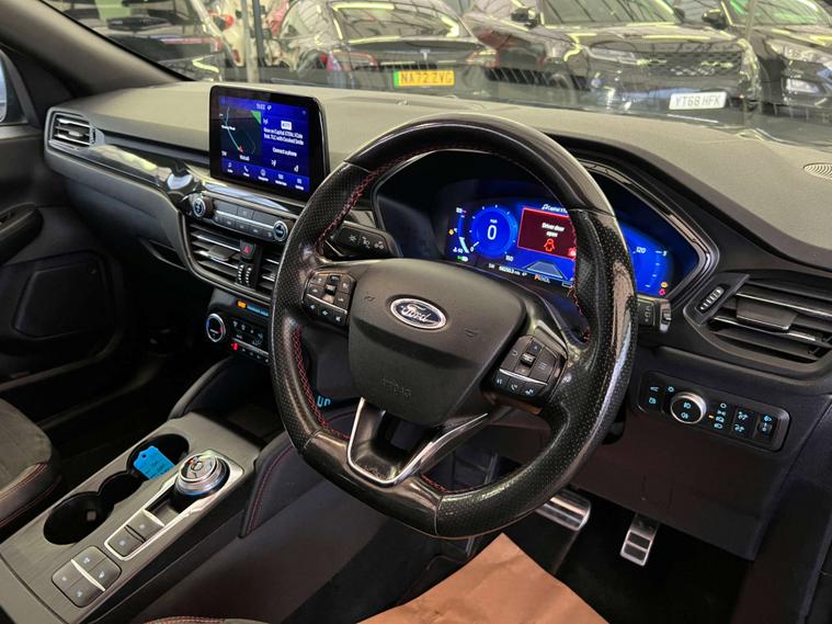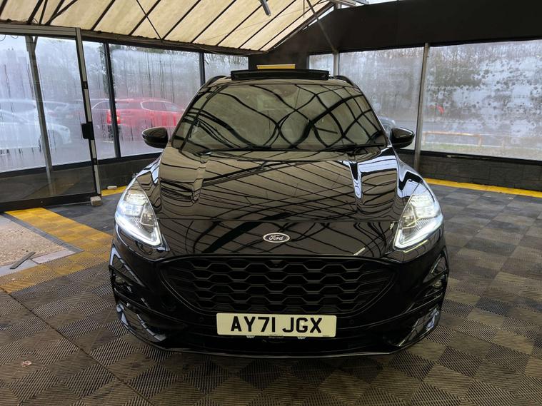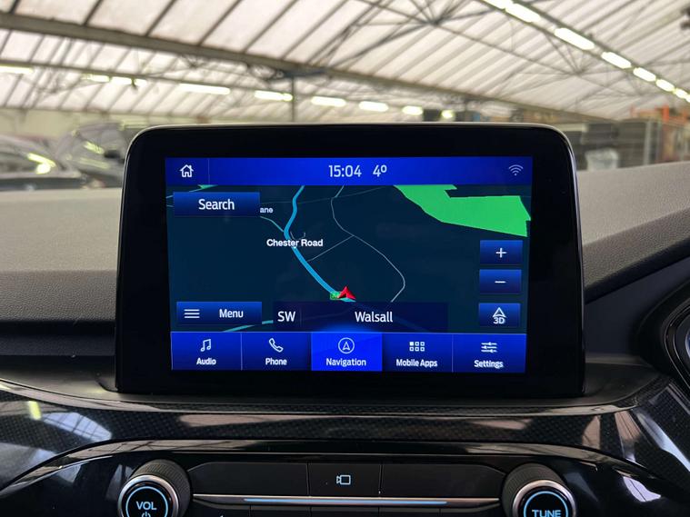 Finished in a sleek Agate Black, the Ford Kuga exudes sophistication and modernity. Its striking exterior is perfectly complemented by the Partial Sensico - Rapton Cloth interior in Ebony, accentuated with bold red stitching, offering a touch of sporty elegance.