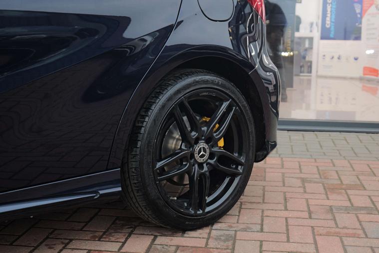 Dressed in a captivating shade of blue, the A-Class exudes sophistication and style, turning heads wherever it goes. Its sleek, aerodynamic design is complemented by the AMG Line's sporty enhancements, ensuring you make a statement on every journey.