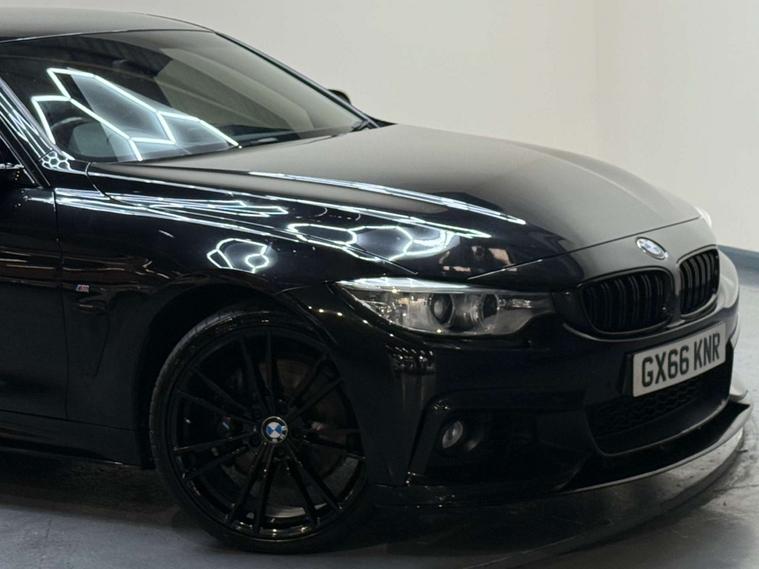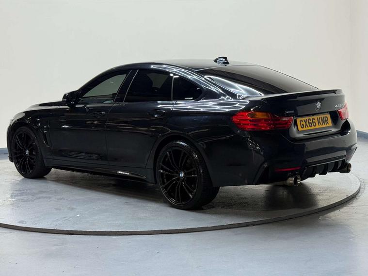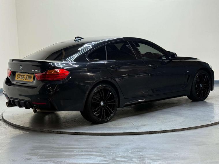 Introducing the stunning BMW 4 Series 3.0 435d xDrive Gran Coupe M Sport Auto 4WD 5dr in sleek Black Sapphire. This luxurious vehicle is the epitome of style and performance, perfect for those who demand the best.