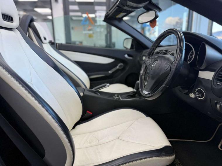 Now available: this Mercedes-Benz SLK 1.8 SLK200K 2LOOK Convertible, finished in black and powered by a lively 184 PS supercharged petrol engine, paired with a smooth Tiptronic automatic transmission. With its retractable hardtop roof and classic roadster proportions, the SLK delivers open-top driving enjoyment with everyday usability and Mercedes-Benz refinement.