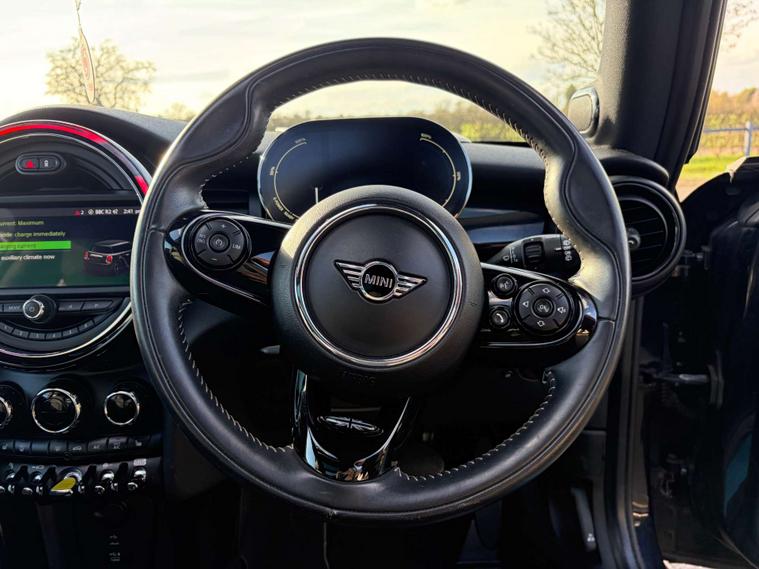This 2020 MINI Electric Hatch Cooper SE Level 3 has had only one owner and boasts a clear vehicle history check. As an electric vehicle, it features a 33 kWh battery offering a maximum range of 141 miles when new. Charging is convenient, with a full charge at home taking approximately 5 hours and 15 minutes using a 7kW charger, and a rapid charge to 80% possible in just 36 minutes at a public charging station. This Level 3 trim comes equipped with LED headlights featuring a distinctive closed ring design for daytime running lights, a Comfort Access System for keyless entry, and both front and rear Park Distance Control along with a rear view camera to aid manoeuvring.
