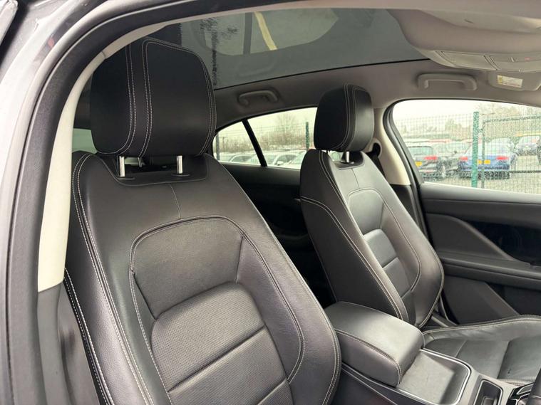 This 2020 Jaguar I-PACE 400 SE is presented with a clear vehicle history check, offering peace of mind for its next owner. As a fully electric vehicle, it boasts a substantial 90 kWh battery, providing an impressive maximum range of 284 miles when new. This Four Wheel Drive model, in SE trim, comes equipped with a range of desirable features including 10-way electric memory front seats, a rear camera for parking assistance, and a Cold Climate Pack featuring a heated steering wheel. Comfort is further enhanced by 2-zone climate control and convenient Bluetooth connectivity.