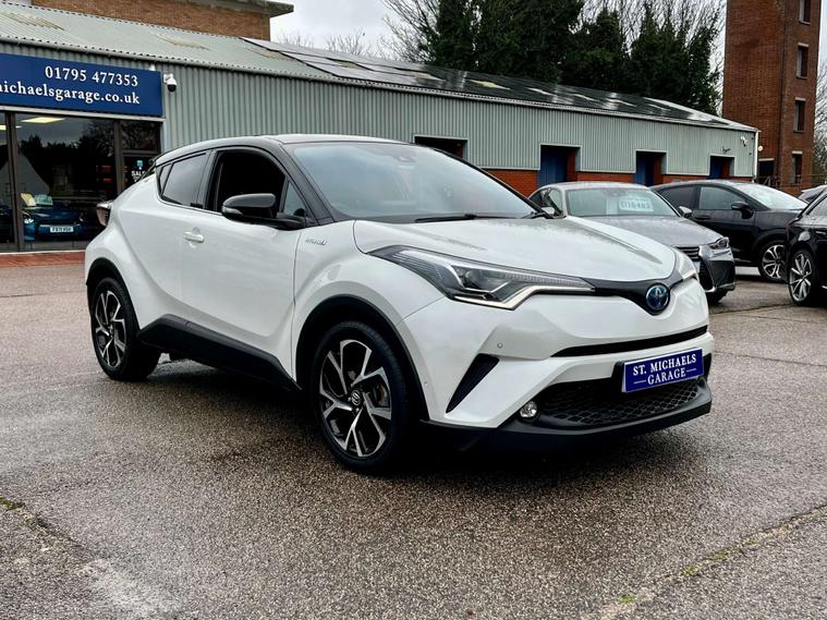 Introducing the stunning Toyota C-hr 1.8 C-HR-Dynamic HEV CVT 5dr in a sleek White finish. With only 23127 miles on the clock, this hybrid beauty is ready to hit the road in style.