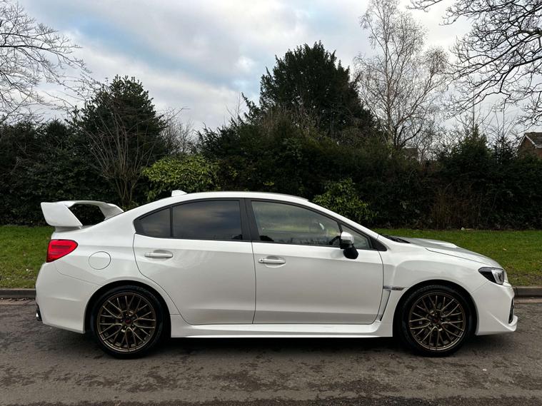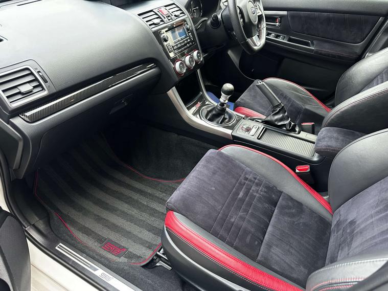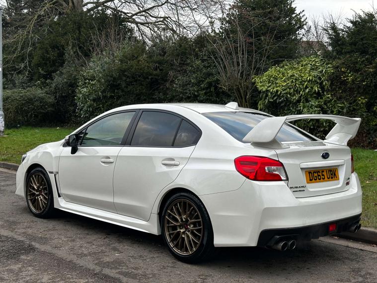 2015 (65) Subaru Impreza WRX STI finished in stunning Pearl White and sitting on gold alloy wheels, complemented by a black leather and Alcantara interior. This is a well-presented and clearly cared-for example, backed up by an excellent service history with services carried out at 4k, 9k, 11k, 25k, 37k and 49k miles. A true performance icon offering sharp looks, a premium interior and the reassurance of regular maintenance, making it an ideal choice for an enthusiast buyer.