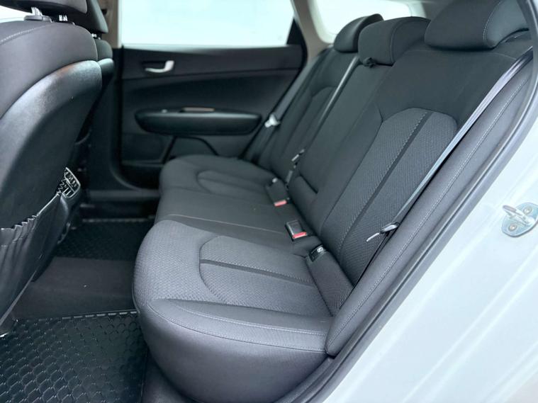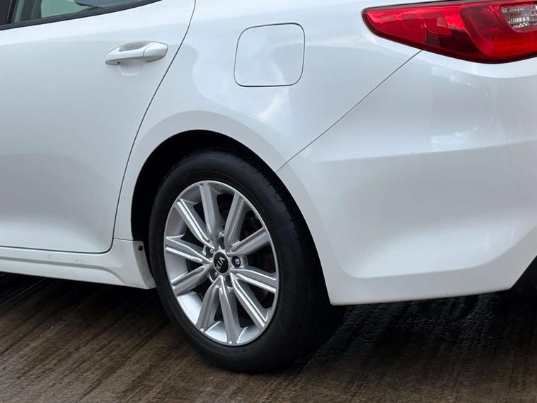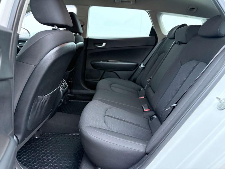 Finished in a stunning White Pearl, the Kia Optima exudes elegance and modernity. Its streamlined silhouette and bold design cues are sure to turn heads wherever you go. Step inside, and you'll be greeted by a spacious and comfortable interior, featuring premium Cloth in Black that perfectly complements the exterior.