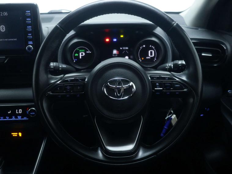 Finished in a sleek Blue exterior, the Toyota Yaris not only looks great on the road but also offers impressive fuel efficiency thanks to its hybrid technology. Whether you're navigating city streets or cruising on the motorway, this car delivers a smooth and responsive driving experience.