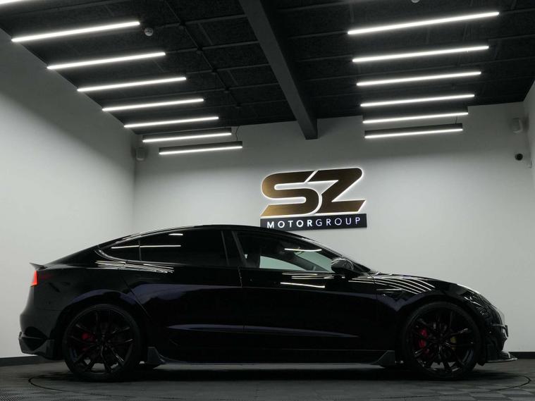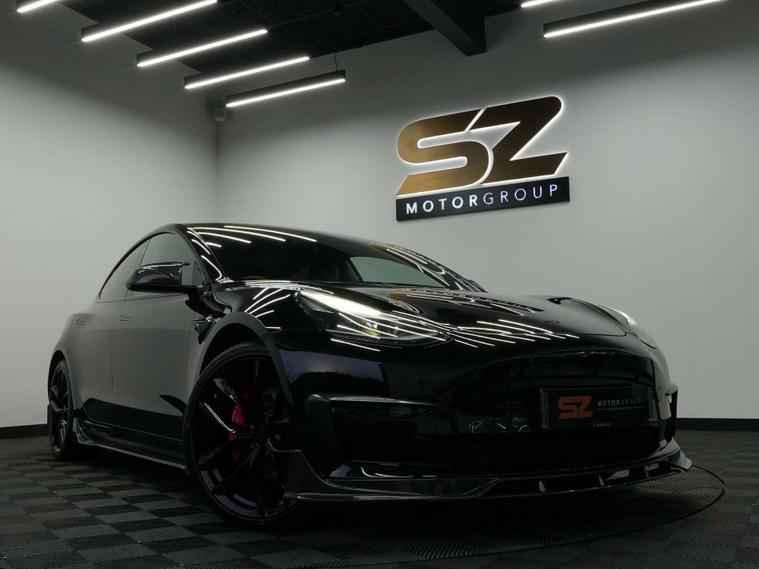 SZ MotorGroup Nottingham are pleased to offer this stunning Tesla Model 3 Model 3 Performance AWD 4WD 4dr, REGISTRATION S44 LDE. PRIVATE PLATE NOT INCLUDED (AVAILABLE £795) Presented in excellent condition throughout, this high-performance example benefits from a full carbon bodykit, 20” black alloy wheels, and a full black exterior pack, giving the vehicle an aggressive yet refined road presence.