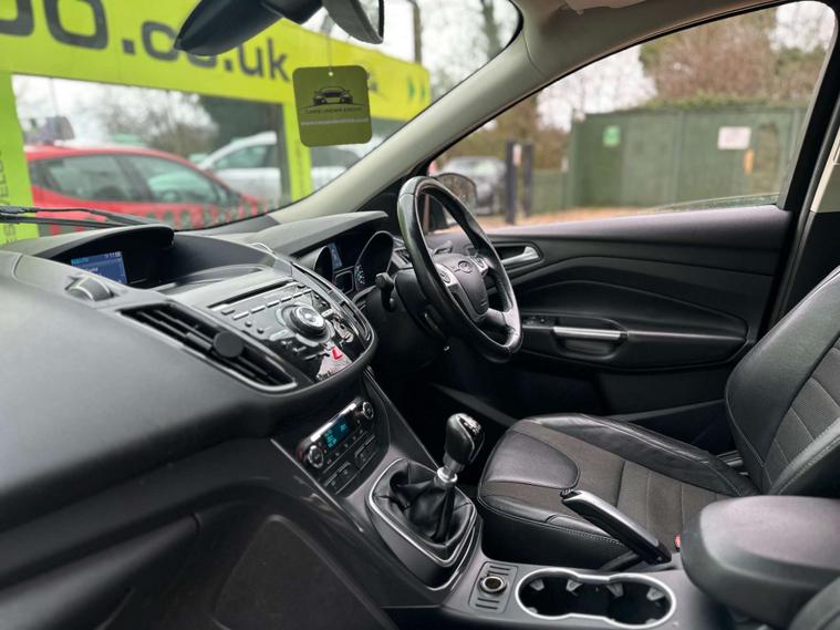 ULEZ / AUTO HEADLIGHTS / This 2015 Ford Kuga TDCi Titanium offers an exceptional blend of efficiency and comfort, making it a wise choice for any driver. Powered by a robust 2.0L Diesel engine, this Euro 6 compliant model boasts an impressive fuel economy of up to 60 miles per gallon, a significant advantage for your running costs. The Titanium trim level ensures a well equipped experience, featuring convenient automatic headlights that adjust to lighting conditions and dual zone electronic automatic temperature control for personalised cabin comfort. Additionally, the integrated Bluetooth hands free phone system allows for safe and easy connectivity on the go.
