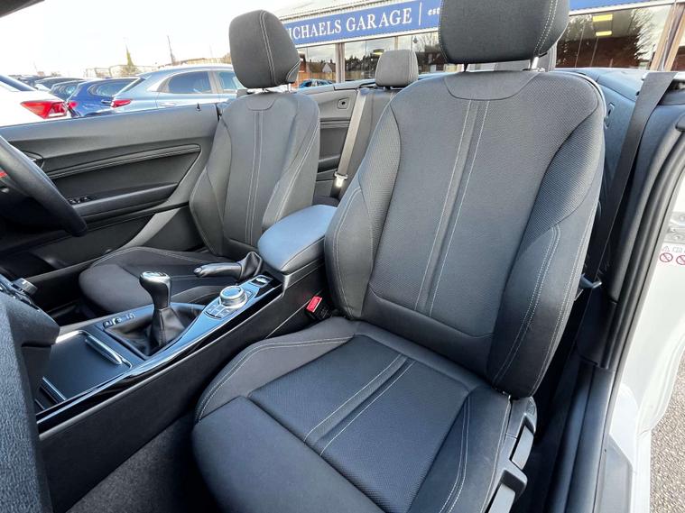 Finished in a sleek Alpine White, this BMW 2 Series is sure to turn heads wherever you go. The interior is equally impressive, featuring Corner Cloth in Anthracite with a Grey Highlight and High-Gloss Black trim with a Pearl Chrome finisher.
