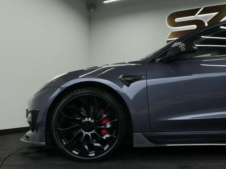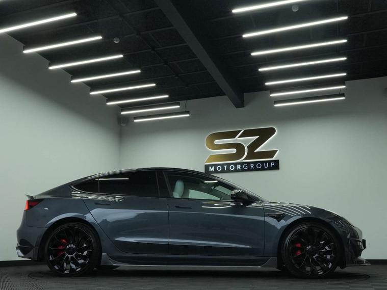 SZ MotorGroup Nottingham are pleased to offer this stunning Tesla Model 3 Model 3 Performance AWD 4WD 4dr REGISTRATION LA69 AUO. Presented in excellent condition throughout, this high-performance example benefits from a full carbon bodykit, 20” black alloy wheels, and a full black exterior pack, giving the vehicle an aggressive yet refined road presence.