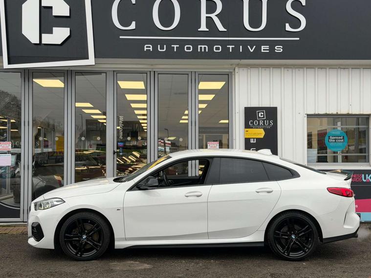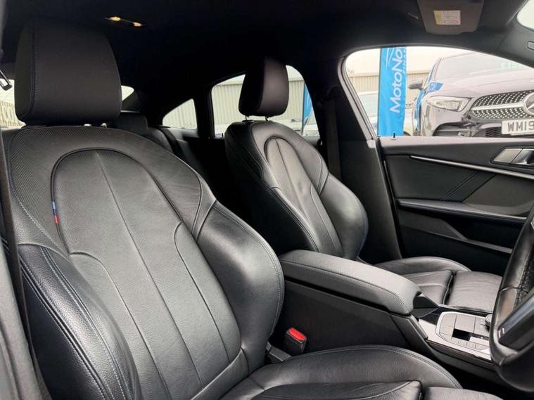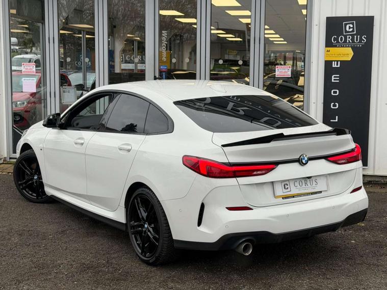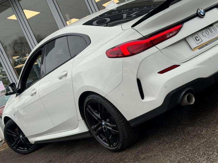 This 2020 BMW 2 Series Gran Coupe 218i M Sport is presented with a clear vehicle history check, offering peace of mind. This stylish M Sport trim vehicle features a 1.5 litre petrol engine and meets Euro 6 emission standards. Inside, you will find the comfort of Perforated Dakota Leather in Black with a Blue Highlight, complemented by a premium Harman Kardon loudspeaker system for an enhanced audio experience. Driving convenience is further assured with the Park Assistant, which includes front and rear Park Distance Control and a rear camera, alongside a rain sensor that automatically activates the headlights, also features Black pack inc rear boot spoiler
