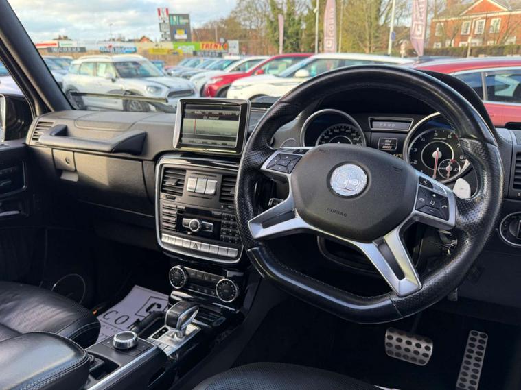 This 2015 Mercedes Benz G Class G63 V8 BiTurbo AMG boasts a clear vehicle history, offering peace of mind for its next owner. Under the bonnet lies a powerful 5.5 litre petrol engine, paired with a four wheel drive system for assured performance in various conditions. This AMG model comes equipped with heated rear seats, a premium Harman Kardon Logic 7 surround sound system with Dolby Digital 5.1 and DTS, and Bi-Xenon headlights with dynamic range adjustment. A reversing camera aids with parking, and the vehicle offers a substantial boot space for all your needs.