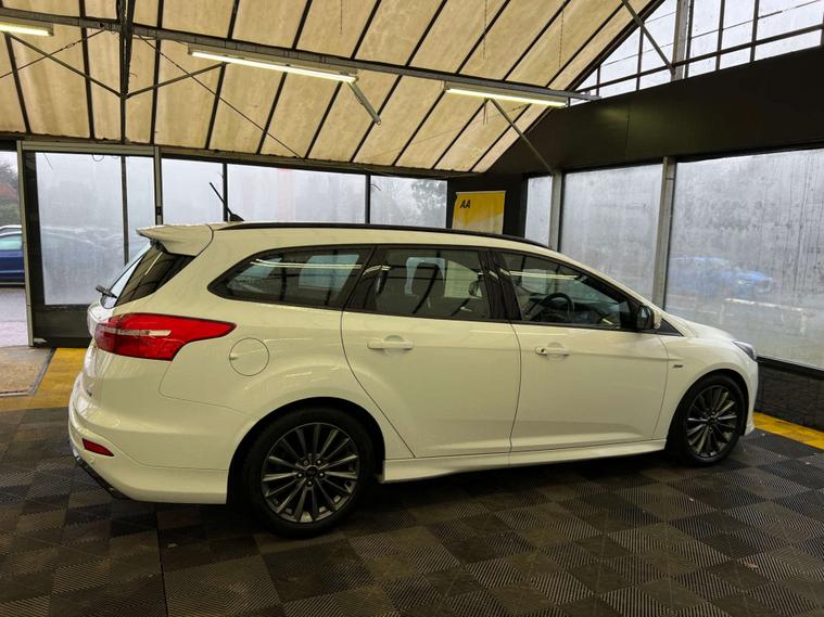 Introducing the Ford Focus 1.0T EcoBoost ST-Line Estate – the perfect blend of style, performance, and practicality. This stunning vehicle, finished in a sleek white, is designed to turn heads while delivering an exhilarating driving experience.