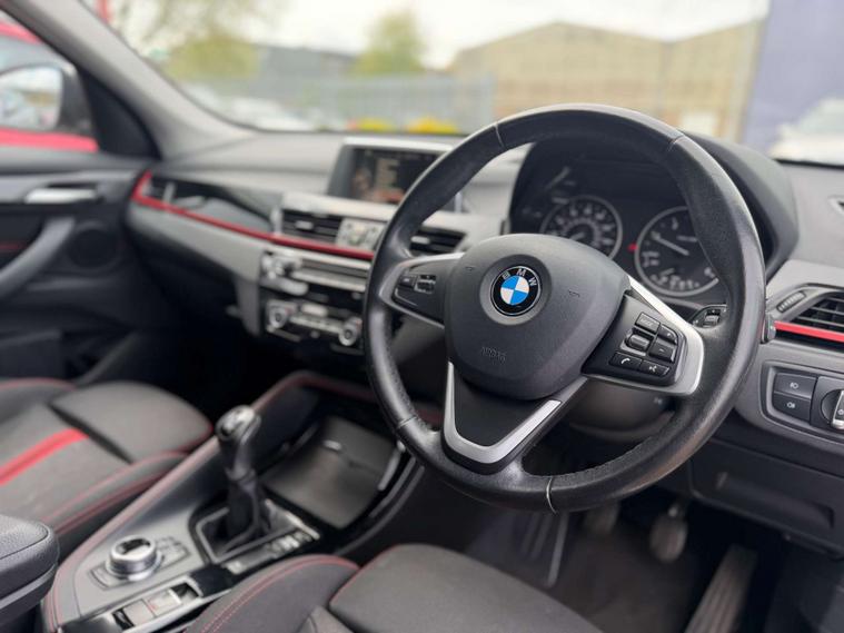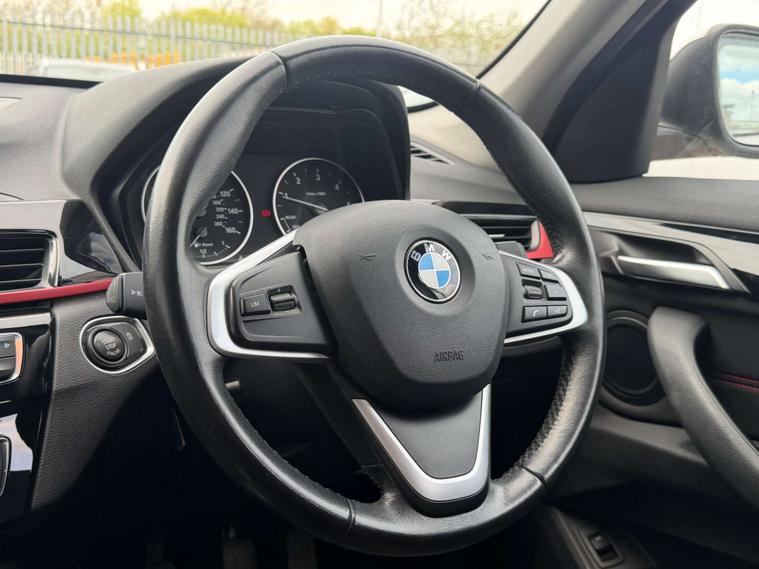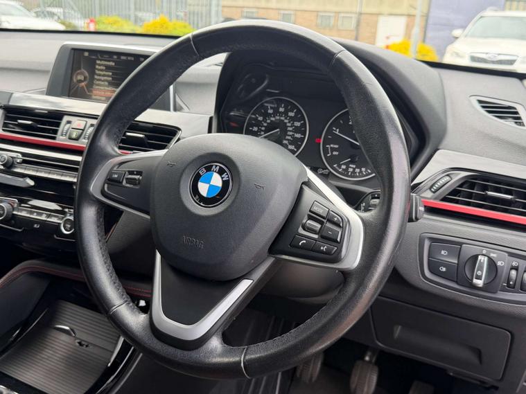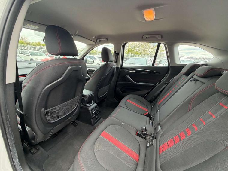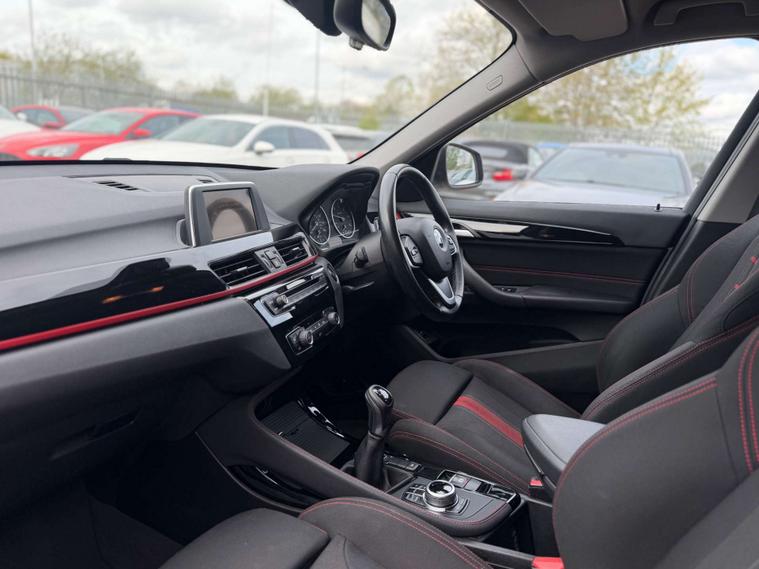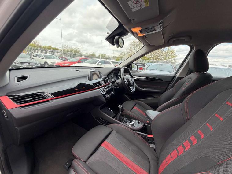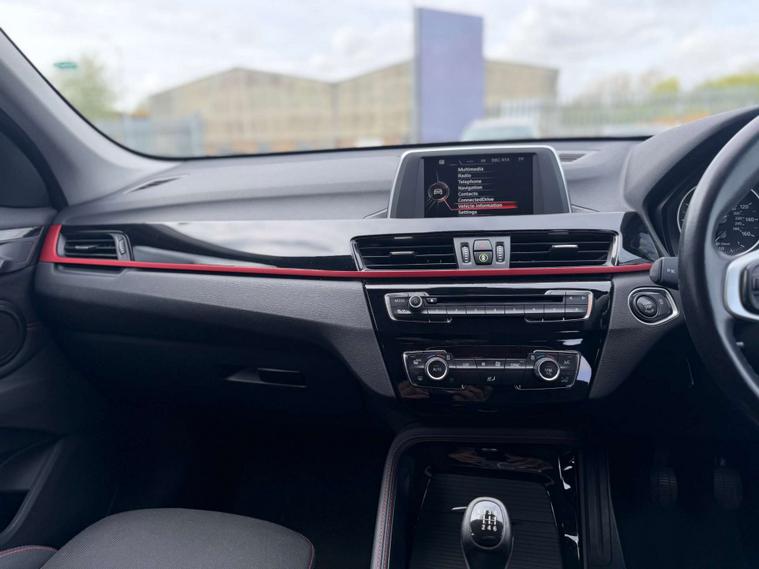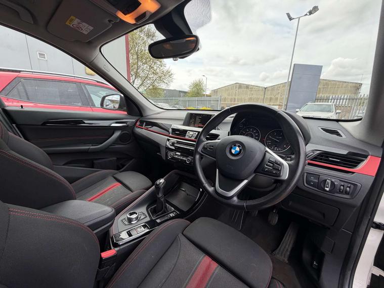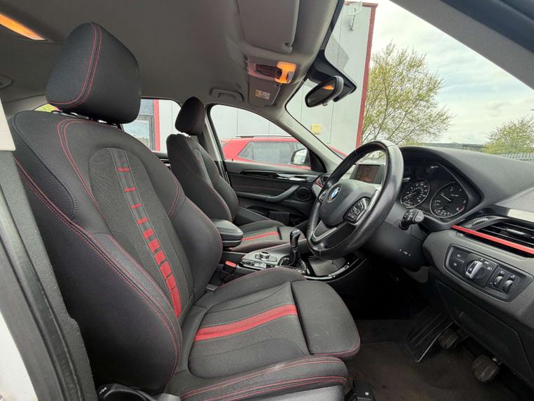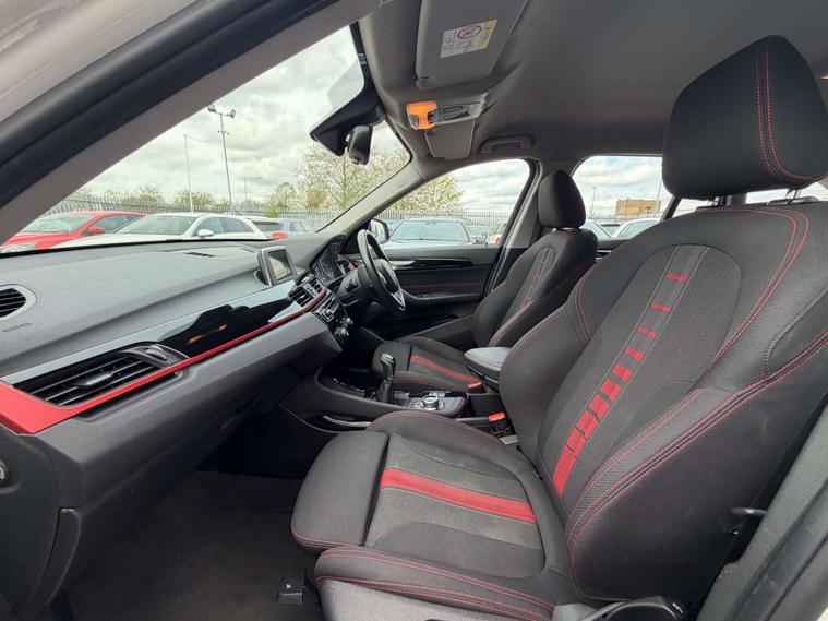 Finished in a stunning Alpine White exterior, the BMW X1 is sure to turn heads wherever you go. The interior features Race Cloth upholstery in Anthracite with a striking Red Highlight, adding a touch of sportiness and sophistication to the cabin.