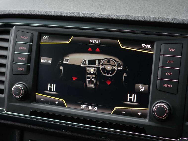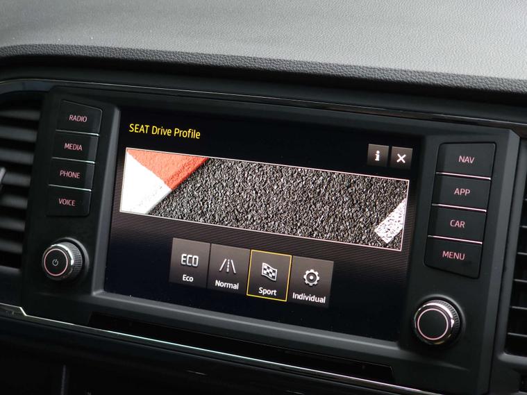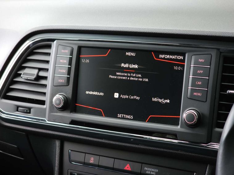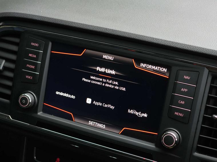 Equipped with Full Link - Which has Apple CarPlay, Android Auto & MirrorLink, Navigation System , Media System Plus, DAB Digital Radio, Bluetooth Interface with Audio Streaming, Rear Parking Sensors, SEAT Drive Profile with Driving Experience Button, Cruise Control, 18in Bi-Colour Alloy Wheels, Electrically Folding Exterior Mirrors, Full LED Headlights, Front LED Fog Lights with Cornering Function, Dual Zone Climate Control & ISOFIX Points in Outer Rear Seats with Top Tether Anchorage Points.