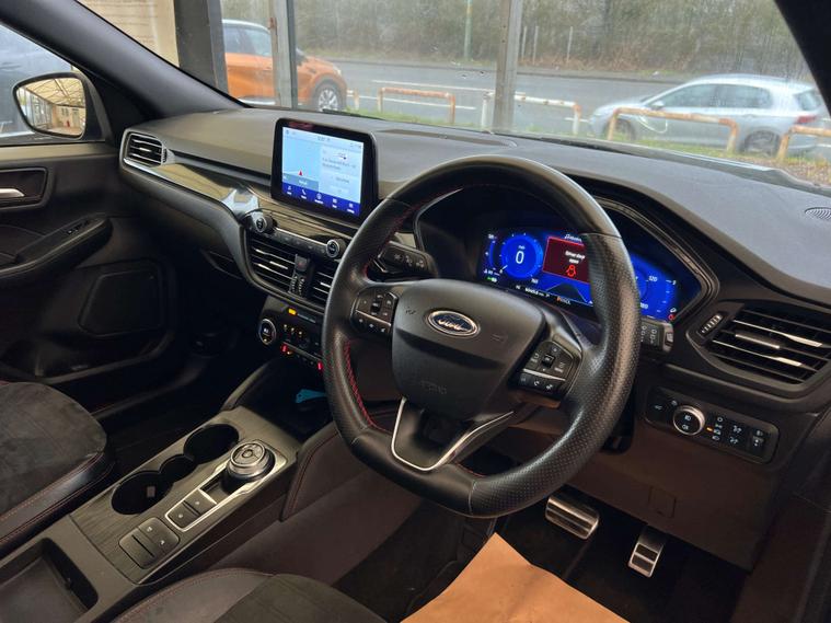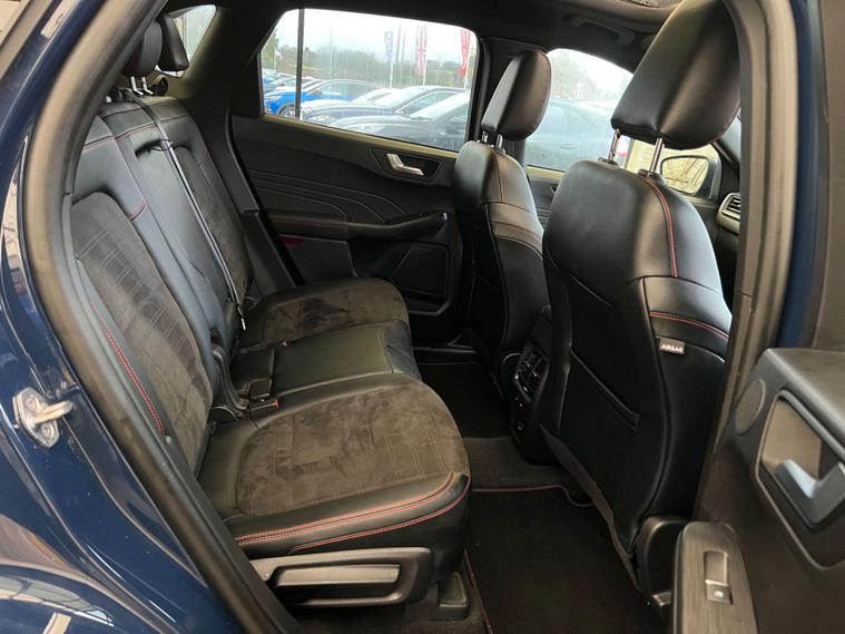 Step inside to discover a world of comfort and luxury. The interior boasts Partial Sensico - Rapton Cloth in Ebony, accentuated with eye-catching red stitching, offering a perfect blend of style and durability. Whether you're commuting through the city or embarking on a long journey, the Ford Kuga ensures every drive is a pleasure.