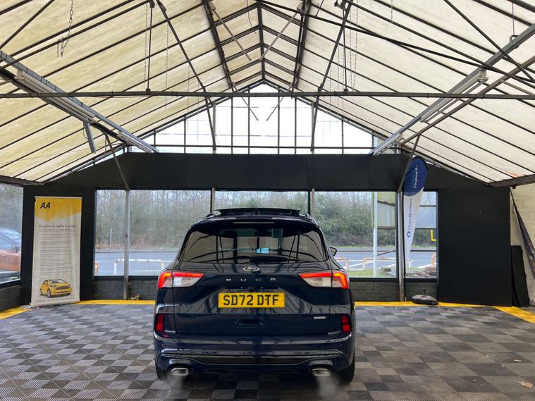 Dressed in a striking Blazer Blue finish, the Ford Kuga exudes an aura of elegance and dynamism that is sure to turn heads wherever you go. The exterior is complemented by the sleek lines and sporty stance of the ST-Line X Edition, making it a true standout on the road.