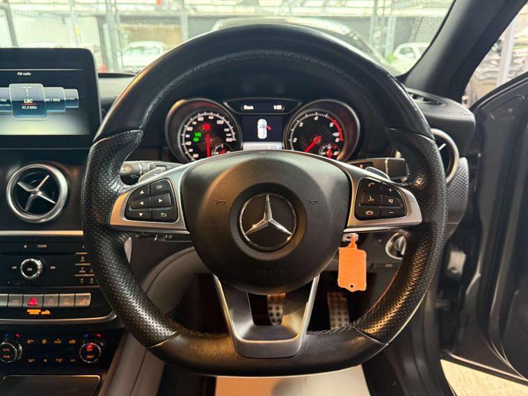 Finished in an elegant Grey, this A-Class exudes a timeless charm that is sure to turn heads wherever you go. Its sleek design is complemented by the AMG Line Executive package, which adds a touch of sportiness and refinement to its already impressive profile.