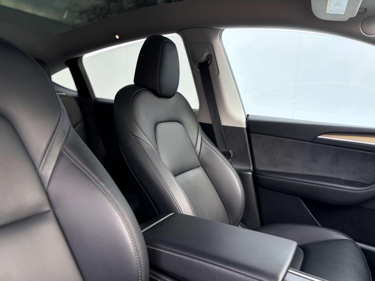 Finished in a stunning Pearl White, this Model Y exudes sophistication and modernity. The exterior's sleek lines and aerodynamic design are not only visually striking but also enhance performance and efficiency. Step inside, and you'll be greeted by the Premium Engineered Material in Black, offering a refined and comfortable driving experience that is second to none.