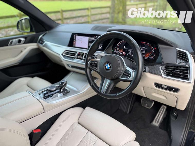Equipped with extras such as Adaptive LED headlights and Sun Protection Glazing, the BMW X5 is designed to provide the ultimate driving experience. The interior features luxurious Perforated Vernasca Leather in Ivory White-Black, adding a touch of elegance to every journey.