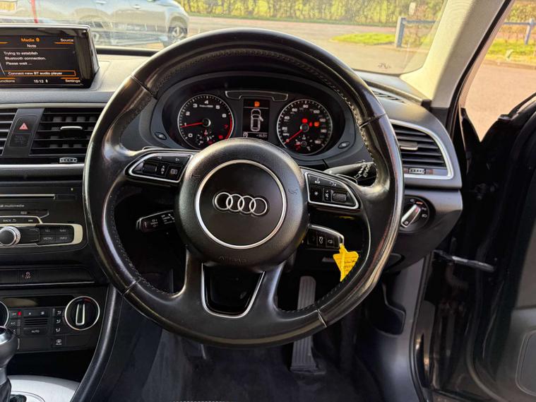 This 2018 Audi Q3 TDI S line Edition offers a compelling blend of style and performance. As a Euro 6 compliant vehicle, it features a robust 2.0 litre diesel engine paired with Audi's renowned four wheel drive system, ensuring confident handling in various conditions. The S line Edition trim enhances its sporty appeal, while practical features like the Light and Rain Sensor, which automatically activates the headlights, and the Bluetooth Interface for seamless connectivity, add to the driving experience. Parking is made effortless with the Audi Parking System Plus, incorporating front and rear sensors, and the advanced LED headlights with dynamic rear indicators provide excellent visibility. Inside, you can maintain your ideal cabin temperature with the Dual Zone Electronic Climate Control.