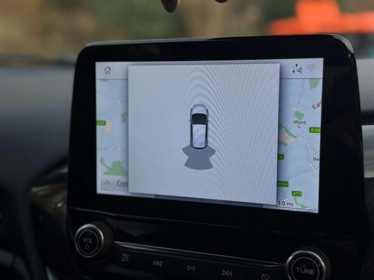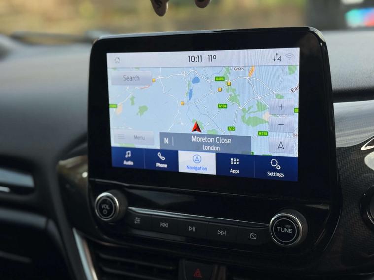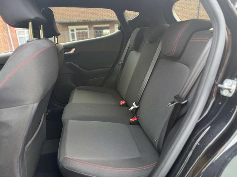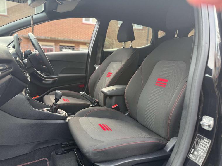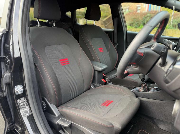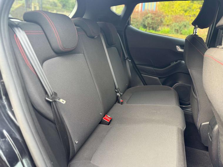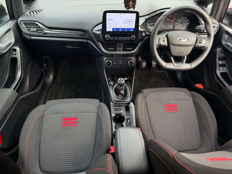 Finished in a sleek Agate Black, the Ford Fiesta exudes sophistication and modernity. Its striking exterior is perfectly complemented by the sporty Cloth interior in Black-Red with eye-catching Red Stitching, ensuring you travel in comfort and style.