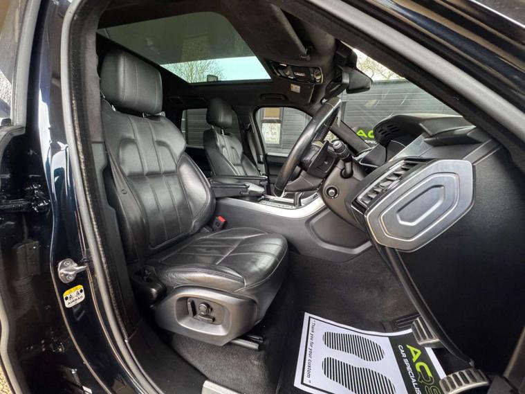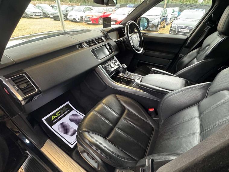 Here at AQS Car Specialist we are delighted to offer this exceptionally well maintained example of a Range Rover Sport 3.0 SDV6 HSe Dynamic 4WD. Finished in a unique Celestial Black with a matching full Black leather interior alongside 21 inch Gloss Black alloys and Side Steps. Complimented by a full and up to date service history - majority being main dealer with the all important Cambelt being changed already, comes with a long MOT with no advisories. In excellent condition both inside and out, drives without fault. These Range Rovers are renown for their stylish design, luxurious interior and comfortable drive. This particular example benefits from being fitted with a Panoramic Glass Sunroof, Cruise Control, Dual Zone Climate Controlled Air Conditioning, Sat Nav, Bluetooth Connectivity, USB Input, DAB Radio, Auto Xenon Signature Headlights, Rain Sensing Wipers, Reverse Camera, Front and Rear Parking Sensors, Powered Tailgate, Electrically Adjustable and Heated Front Seats with Drivers Memory Function, Heated Rear Seats, AutoDimming Rear View Mirror, MultiFunctional Steering Wheel with Paddle Shifters, Hill Hold and Hill Start Assist and the super useful Split Fold Rear Bench amongst all the usual Range Rover refinements.