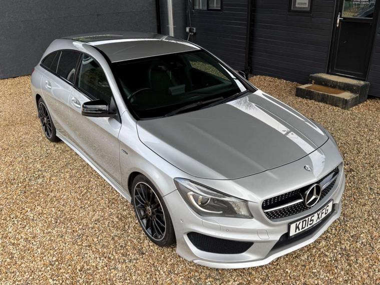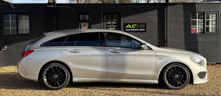 Here at AQS Car Specialist we are delighted to offer this well maintained example of a Mercedes CLA 220 2.1 CDi AMG Sport Shooting Brake. Finished in Silver with a contrasting Black half leather and half alcantara interior alongside newly refurbished Matt Black 18 inch alloys. Recently serviced and complimented by a full and up to date service history as well as coming with a fresh MOT with no advisories. In fantastic condition both inside and out, drives like a dream ! These CLA estates are renown for their sleek design, comfortable interior, being very reliable and low maintenance. This particular example benefits from being fitted with Dual Zone Climate Controlled Air Conditioning, Cruise Control, Sat Nav, Bluetooth Connectivity, USB Input, Auto Bi-Xenon Headlights with DayTime Running Lights, Rain Sensing Wipers, Front and Rear Parking Sensors, Collision Prevention Assist, Hill Hold and Hill Start Assist, MultiFunctional Steering Wheel with Paddle Shifters, Switchable Driver Modes and the super handy Split Fold Rear Bench amongst all the usual Mercedes refinements.