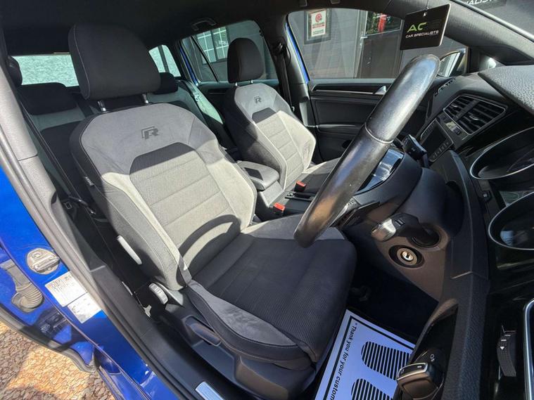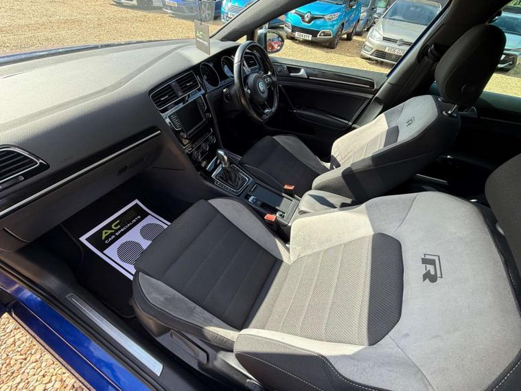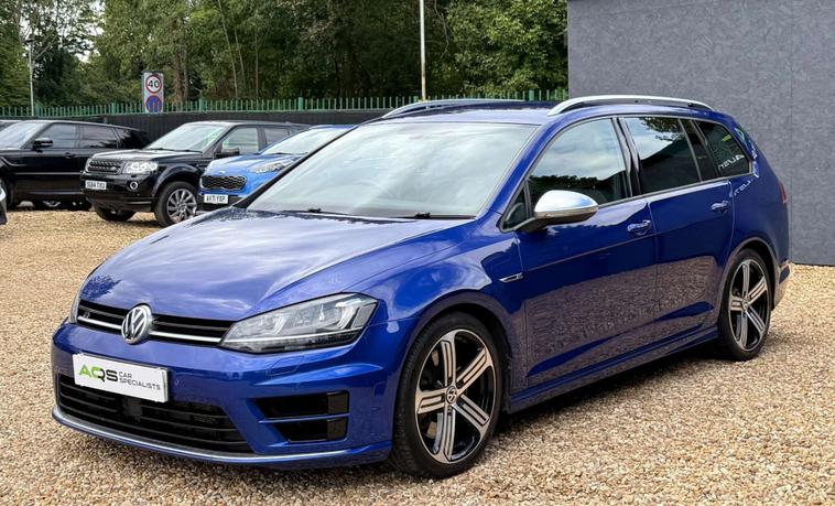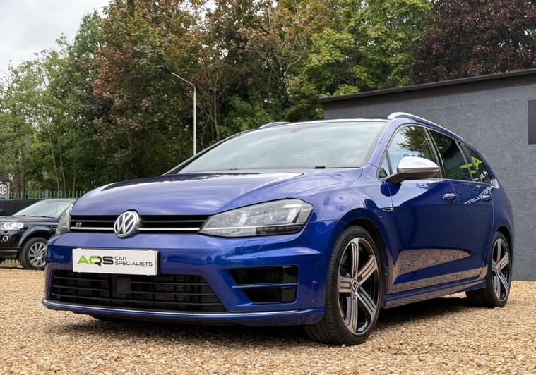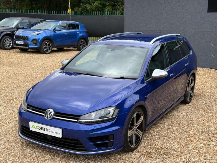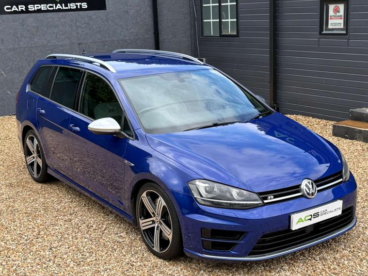Here at AQS Car Specialist we are delighted to offer this excellent example of a Volkswagen Golf R 2.0TSI DSG 4Motion Estate. Finished in the stunning and must have Lapiz Blue with a contrasting two tone Grey Alcantara interior alongside 18 inch Cadiz alloys. Complimented by a full and up to date Main Dealer service history with the all important Haldex and Gearbox service already completed, stacks of invoices and a fresh MOT. In fantastic condition both inside and out, this is a great example of how a Golf R should drive ! These Golf R's are renown for their stylish looks, being comfortable, having exceptional performance while still being reliable. This particular example benefits from being fitted with some great features which include, Dual Zone Climate Controlled Air Conditioning, Adaptive Cruise Control, Sat Nav, Bluetooth Connectivity, USB Input, DAB Radio, Auto Bi-Xenon Headlights with Cornering Function, Rain Sensing Wipers, Front and Rear Parking Sensors with Visual Aid, Heated Front Seats, MultiFunctional Steering Wheel with Paddle Shifters, Heated and PowerFolding Side Mirrors, AutoDimming Rear View Mirror, Full R Styling From Factory, Tyre Pressure Monitoring System, Switchable Driver Modes, Privacy Glass and the super useful Split Fold Rear Bench amongst all the usual VW refinements you expect.