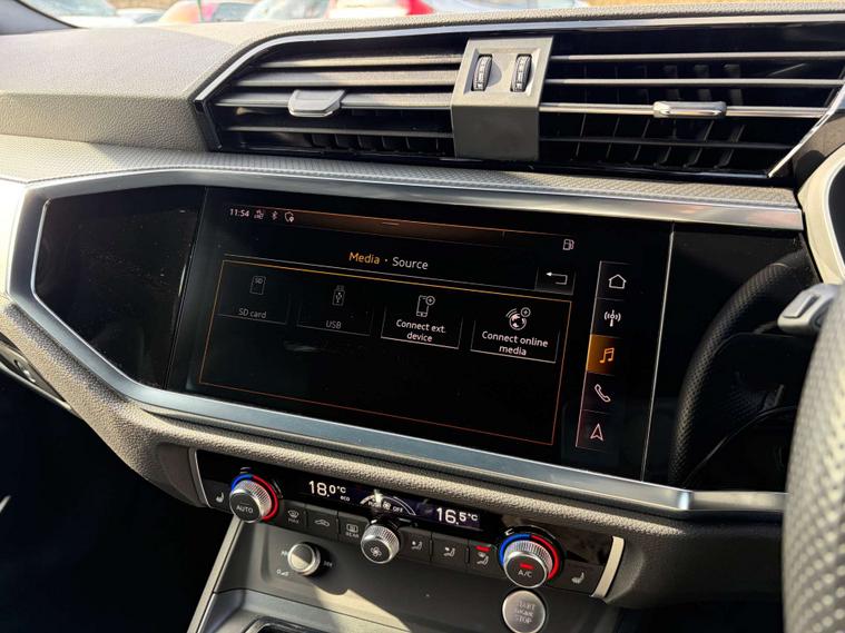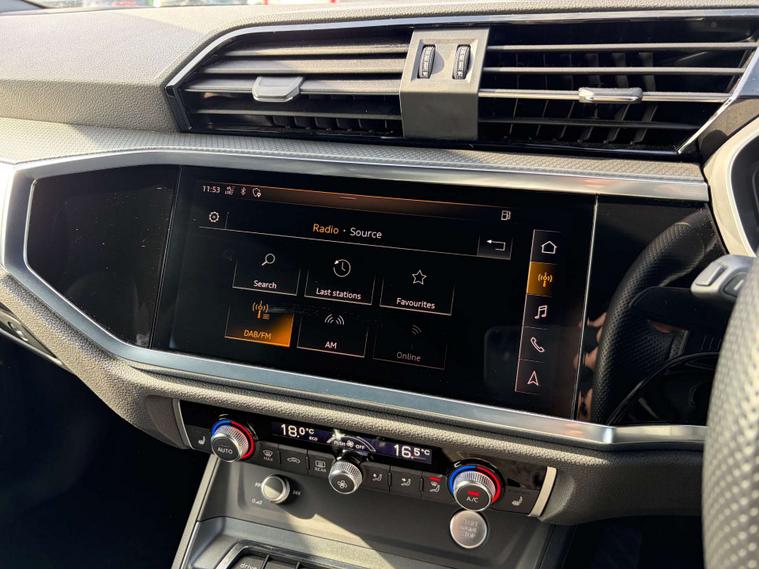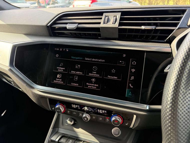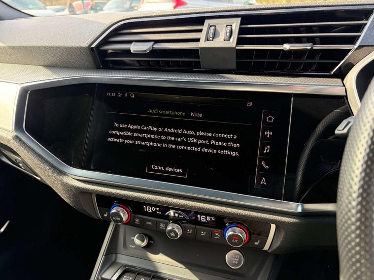 This 2019 Audi Q3 TFSI S line boasts exceptionally low mileage for its age, having covered just 13384 miles. This stylish SUV features a 1.5 litre petrol engine and meets Euro 6 emissions standards. It comes equipped with advanced LED headlights that include dynamic daytime running lights and eye catching dynamic rear indicators. Inside, you'll find dual zone electronic climate control for personalised comfort, and the Audi Smartphone Interface seamlessly integrates your phone with wireless Apple CarPlay. Connectivity is further enhanced by a Bluetooth interface, and for added safety and awareness, it includes Audi Side Assist, which provides blind spot assistance.