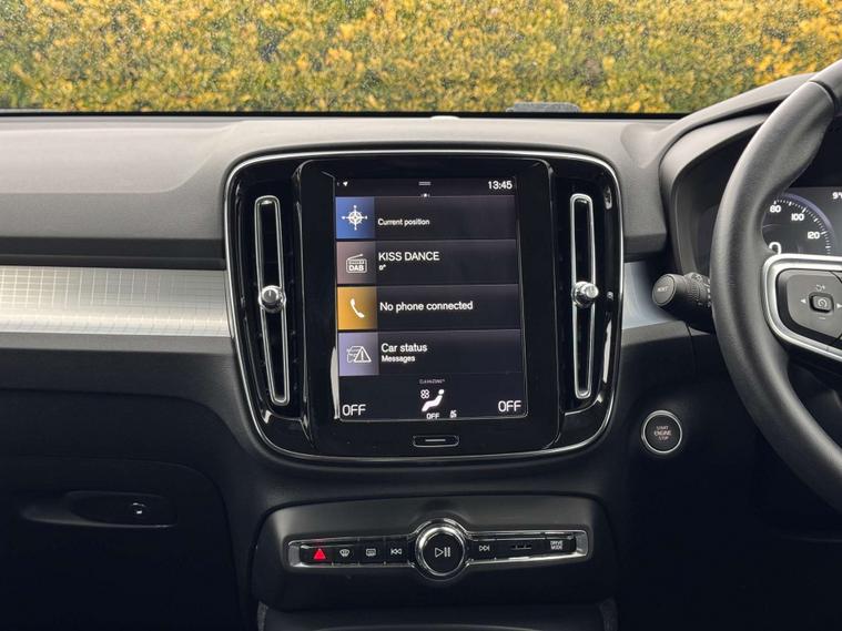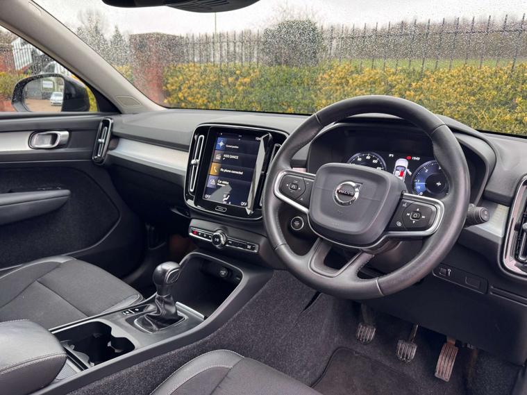 Finished in a sleek Black Stone, the Volvo XC40 exudes an air of elegance and modernity. Its striking exterior is perfectly complemented by the luxurious Textile-Vinyl Charcoal interior, offering a comfortable and stylish driving experience for both driver and passengers alike.