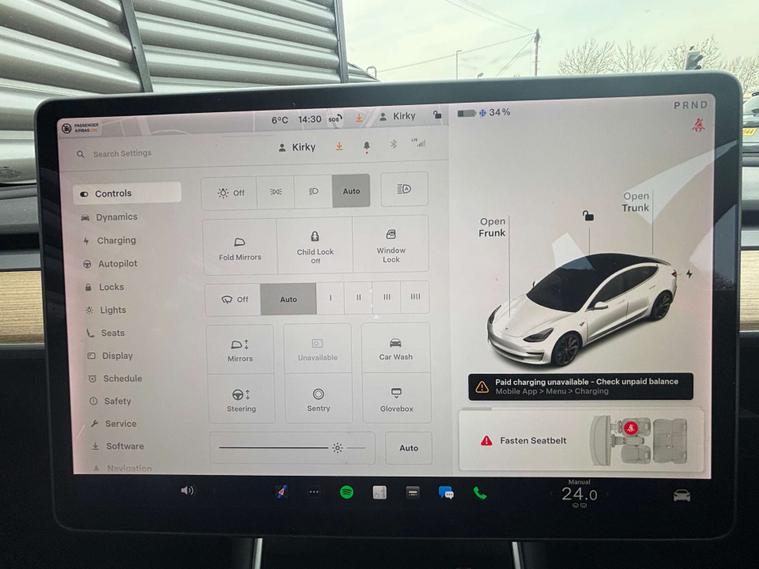 Colour touchscreen infotainment (15.4″) — controls most vehicle functions including navigation, media, climate. Satellite navigation / built-in maps, Bluetooth hands-free and audio streaming, Voice control, DAB digital radio; USB-C charging ports, Climate control (dual-zone automatic), Electric windows front & rear. Electric seat controls with heated seats, Power adjustable steering wheel. Central locking & keyless entry / walk-away door lock, Isofix child-seat anchors, Panoramic roof, Autopilot - lane-keeping, automatic emergency braking, traffic-aware cruise control, Rear-view camera / surround cameras, Car wash mode, Sentry Mode, Dashcam built-in, App connectivity