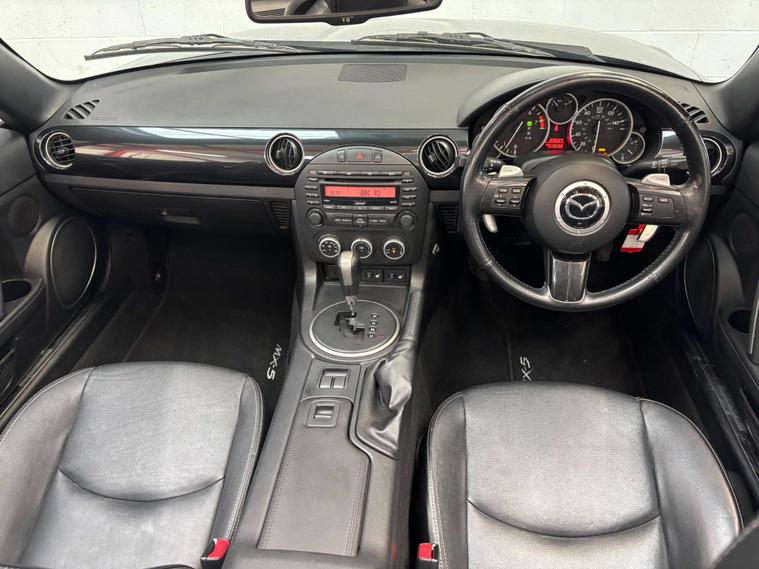 This is a rare automatic Roaster. We Specialise selling MX-5's, check out our website for our up to date stock list. This MX-5 will be Supplied with a comprehensive 6 Month Unlimited Mileage Warranty a used car check and new MOT plus 12 months free AA breakdown cover. We offer Competitive Finance subject to status please call for a quotation or log onto our website to use our Finance Calculator. Three owner car from new with full Service history. It has had x9 Mazda services and three services from an independent garage. The previous owner was a MX5 club member. Finished in Aluminium Silver Metallic with complementing Black leather upholstery. Heated front seats. Radio/CD. Bluetooth Phone Preparation. Cruise control. Automatic Air conditioning. Multi function steering wheel with gearchange paddles. Electric wing mirrors. Remote central locking. Refurbished 17" alloy wheels. Electric folding hard top. This Roadster is in Great condition throughout. Hpi Clear. Part Exchange Welcome. We are located in Cwmbran by appointment only, please contact Chris to book your appointment:- Call-Text or WhatsApp 01633922672