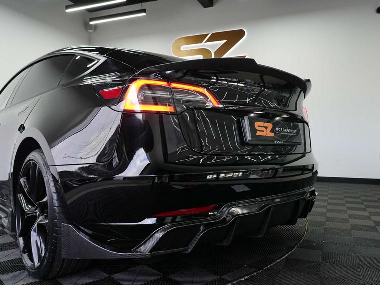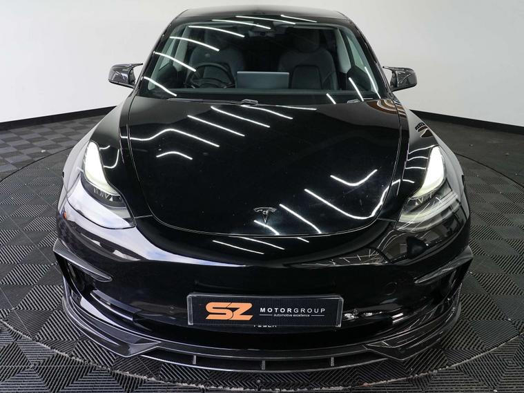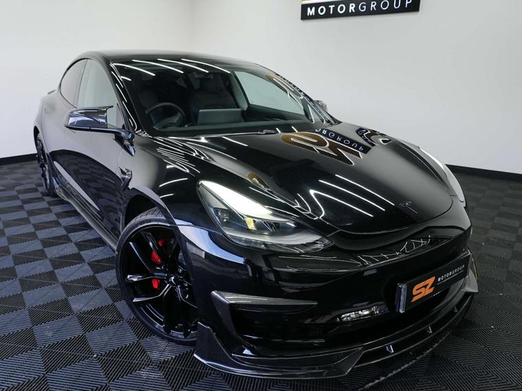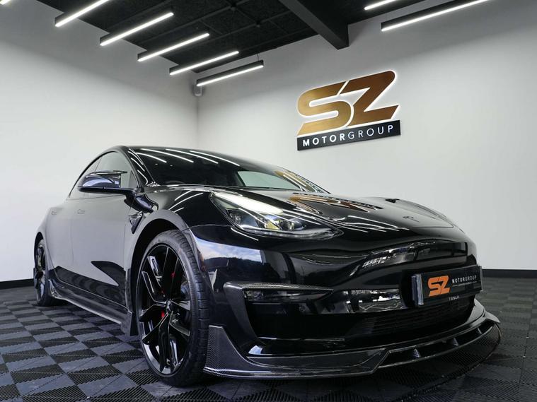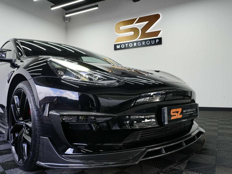 SZ MotorGroup Nottingham are pleased to offer this stunning Tesla Model 3 Model 3 RWD REGISTRATION: MW72 OZE 4dr. Presented in excellent condition throughout, this example benefits from a full carbon bodykit, 20” black alloy wheels, and a full black exterior pack, giving the vehicle a sharp, modern, and highly desirable road presence.