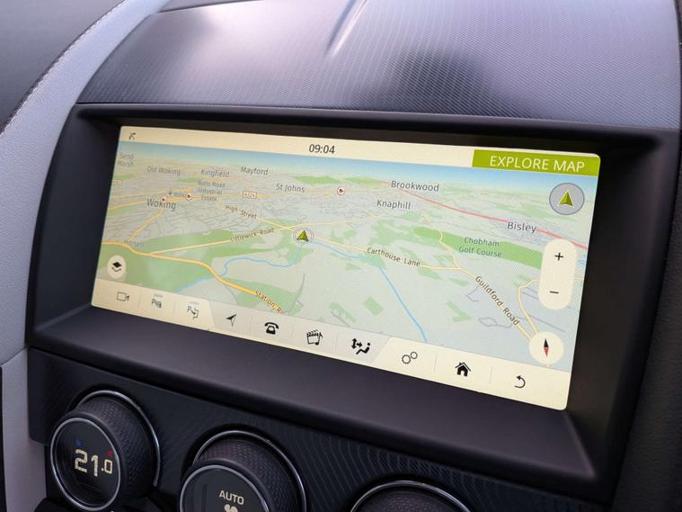 Finished in a sleek Indus Silver colour, this Jaguar F-Type comes with some fantastic extras to enhance your driving experience. Enjoy the crystal-clear sound of the Meridian Surround Sound System, turn heads with the 20-inch Alloy Wheels in a stylish Gloss Black finish, and bask in the natural light with the Fixed Panoramic Roof. The Tailgate Privacy Glass adds a touch of sophistication, while the luxurious Suedecloth and Windsor Leather interior in Ebony-Cirrus provides the ultimate in comfort and style.
