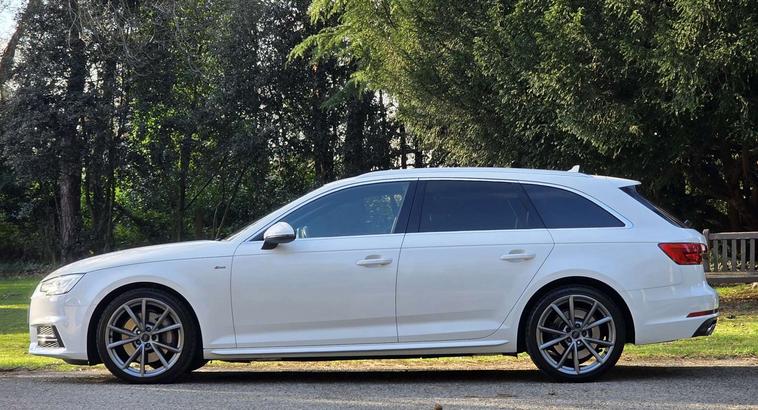 This 2016 Audi A4 Avant TDI V6 S line boasts a full service history, offering peace of mind for its next owner. This four wheel drive model, registered in 2016, features a powerful 3.0L diesel engine and meets Euro 6 emissions standards. Inside, you'll find the desirable S line trim with Alcantara and leather sport seats, complete with an embossed S line logo. The cabin is enhanced by the Audi Virtual Cockpit, a 12.3 inch high resolution LCD display, and the convenience of the Audi Phone Box with wireless charging. For added comfort and security, this A4 Avant includes privacy glass and front acoustic glazing, all riding on striking 19 inch alloy wheels in a matt titanium look with a diamond cut finish.