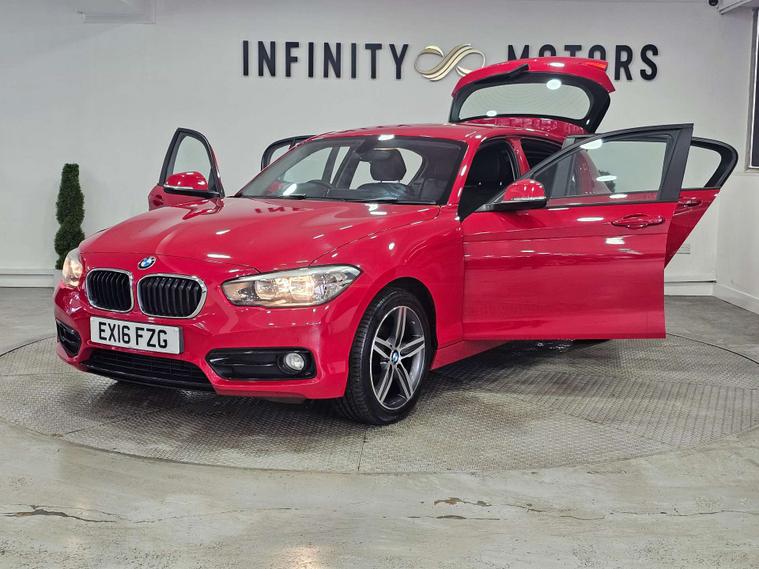 Infinity Motors present the stunning BMW 1 Series 1.5 118I Sport 5dr in a striking Crimson Red finish. This BMW 1 Series comes with a range of fantastic extras, including an Automatically Dimming Rear View Mirror, Driver Comfort Package, Enhanced Bluetooth Telephone Preparation with USB Audio Interface and Voice Control, Full Black Panel Display, Media Package - BMW Professional, Seat Adjustment - Front Electric with Driver Memory, Steering Wheel - Heated, Dakota Leather - Black with Red Highlight with Black Interior, Door Mirrors - Folding - Automatically Dimming, Seats - Front Heated.