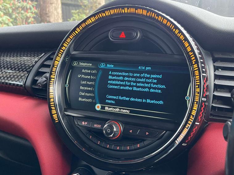 SPECIFICATION HIGHLIGHTS - MINI Tech Pack / MINI Head-Up Display / Harman Kardon Hi-Fi System / CHILI Pack / Media Pack XL / Rear View Camera w. PDC - Park Distance Control - Rear / Seat Heating for Driver and Front Passenger / 17in Alloy Wheels - John Cooper Works Track Spoke - Black / Enhanced Bluetooth with USB Audio / Air Conditioning - Automatic Dual Zone / Bonnet Stripes - Black / / Darkened Rear Glass / Colour Line - Glowing Red / Front Centre Armrest / Interior Light Pack / MINI Excitement Pack / Rain Sensor and Automatic Headlight Activation