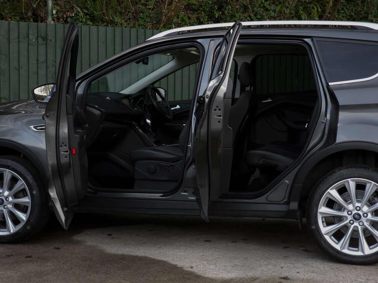 The high-spec Titanium X Edition benefits from Ford SYNC 3 with Apple CarPlay and Android Auto, power-opening panoramic glass roof, satellite navigation, DAB digital radio, Bluetooth interface with audio streaming, front heated seats, cruise control with adjustable speed limiter, rear parking sensors, ambient interior lighting, Appearance Pack, 19-inch alloy wheels, electrically adjustable, heated and power-folding exterior mirrors with integrated indicators and puddle lights, rear privacy glass, bi-xenon headlights with dynamic bending and adaptive beam shape, Ford Power starter button, dual-zone electronic automatic climate control (DEATC), and the Ford KeyFree system with hands-free powered tailgate.