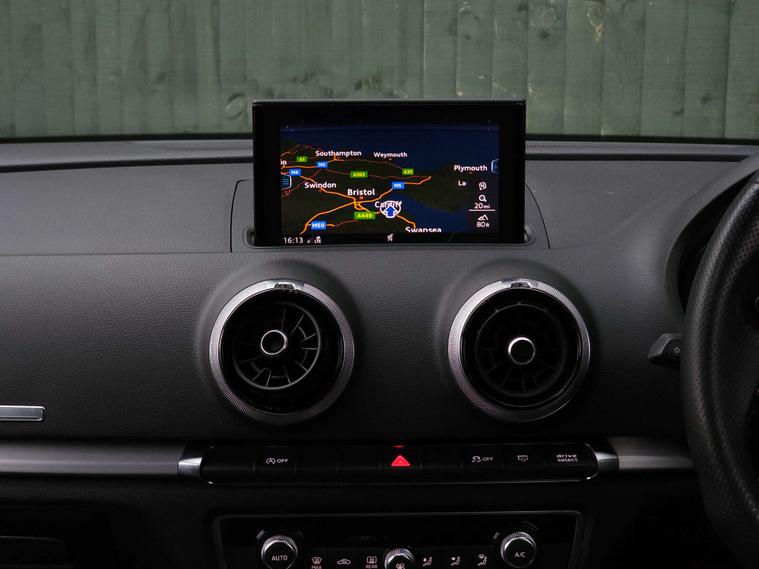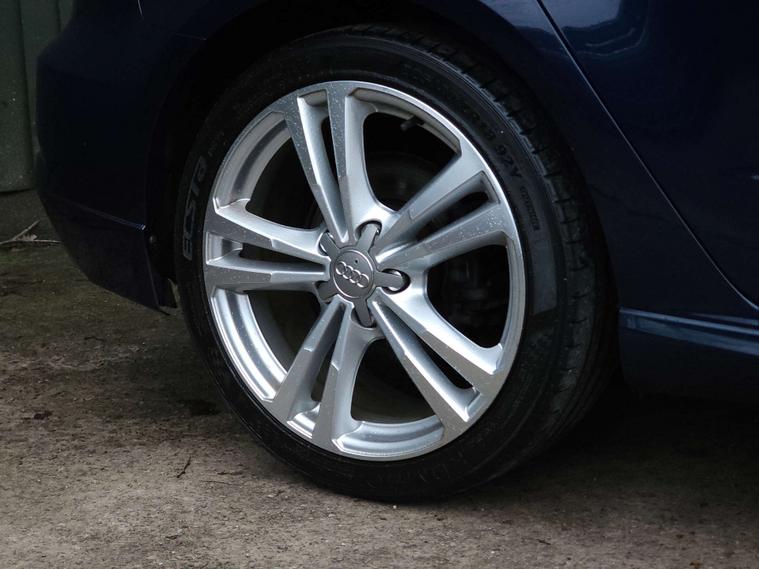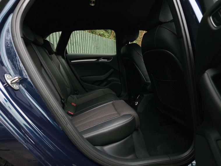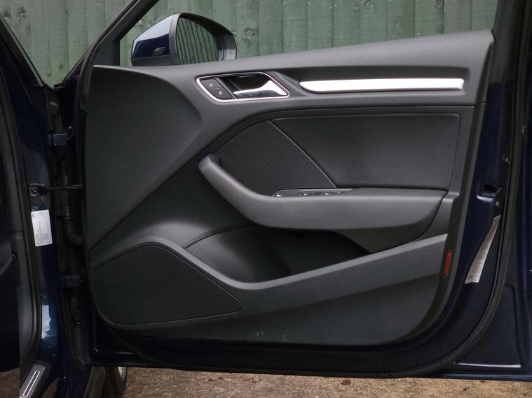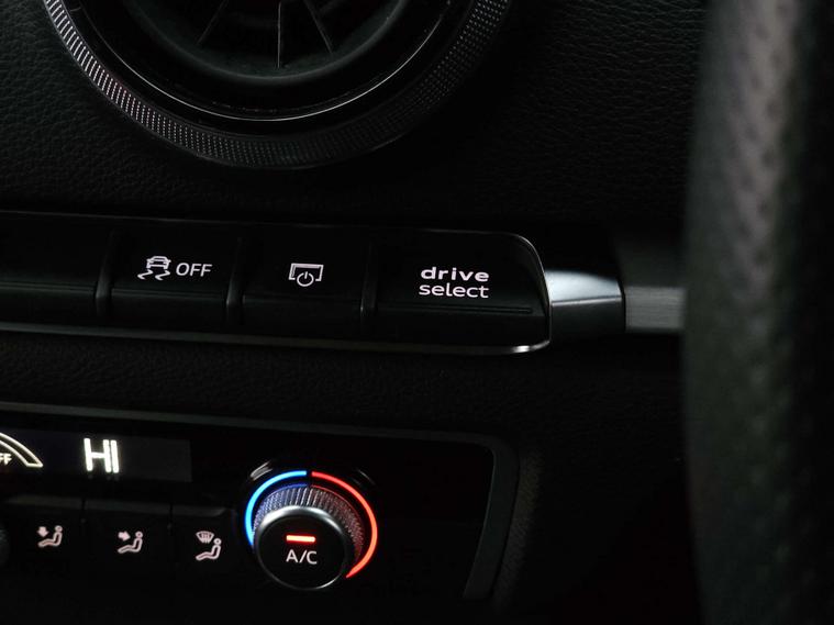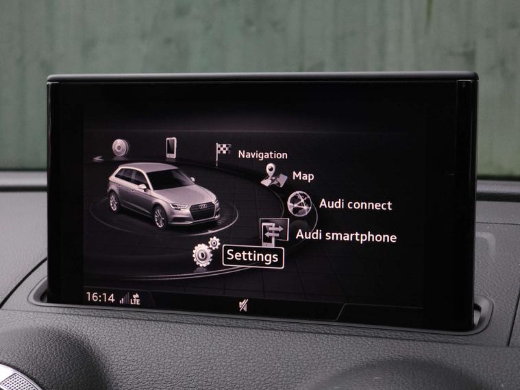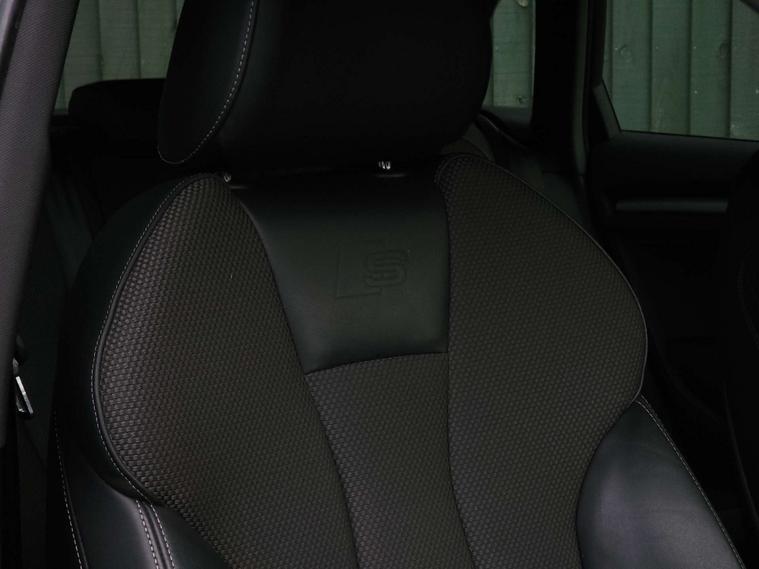 Specification highlights include Audi Smartphone Interface with Apple CarPlay and Android Auto, Bluetooth interface with audio streaming, MMI navigation, DAB digital radio, MMI Radio Plus with 7-inch electrically retractable colour display, cruise control, Audi Drive Select, rear parking sensors, S Line exterior styling, electrically adjustable and heated door mirrors with integrated LED indicators, 18-inch diamond-cut alloy wheels in 5 parallel-spoke design, LED headlights with LED rear lights and dynamic rear indicators, LED interior light package, dual-zone electronic climate control, Audi Hill Hold Assist, and ISOFIX child seat mounting points with top tether anchors