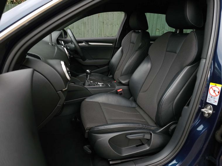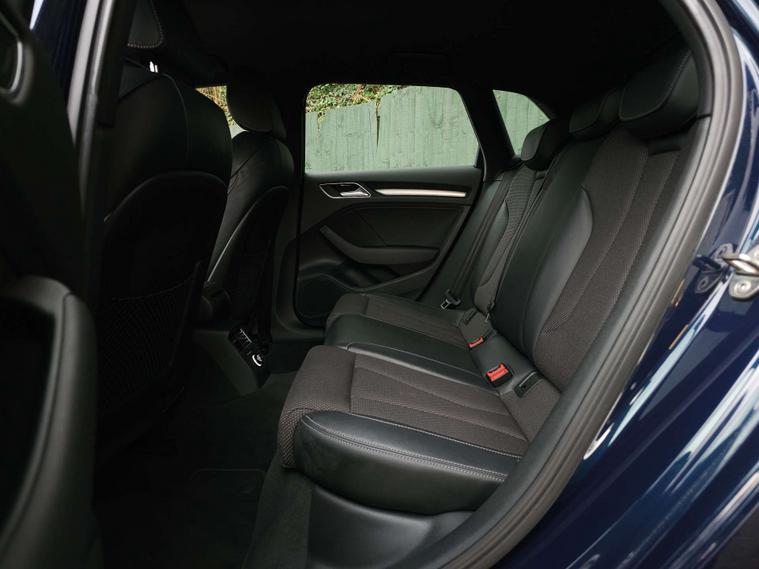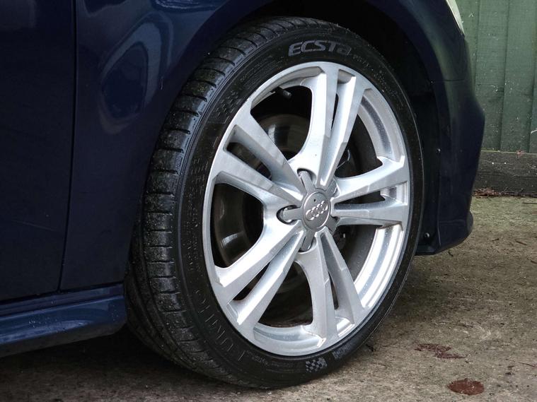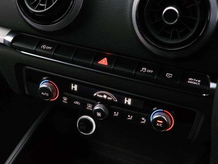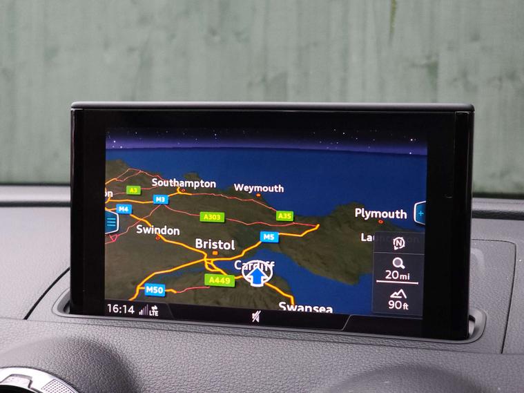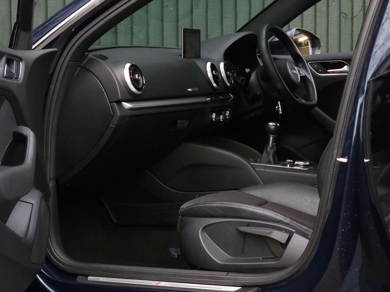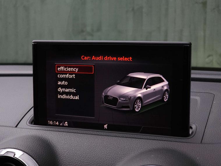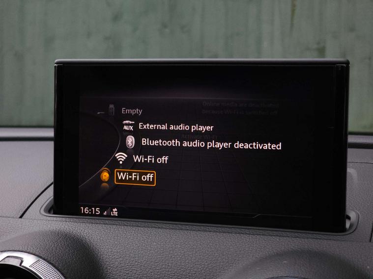 Specification highlights include Audi Smartphone Interface with Apple CarPlay and Android Auto, Bluetooth interface with audio streaming, MMI navigation, DAB digital radio, MMI Radio Plus with 7-inch electrically retractable colour display, cruise control, Audi Drive Select, rear parking sensors, S Line exterior styling, electrically adjustable and heated door mirrors with integrated LED indicators, 18-inch diamond-cut alloy wheels in 5 parallel-spoke design, LED headlights with LED rear lights and dynamic rear indicators, LED interior light package, dual-zone electronic climate control, Audi Hill Hold Assist, and ISOFIX child seat mounting points with top tether anchors