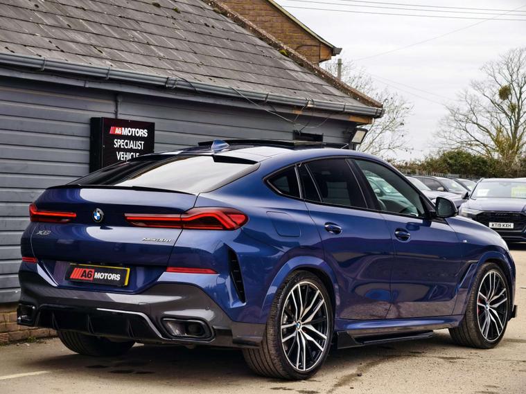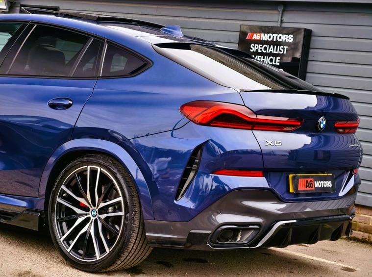 SAME DAY FINANCE AVAILABLE WITH £0 DEPOSIT. CALL OUR FINANCE TEAM FOR A QUOTATION TODAY. REQUEST A PERSONALISED VIDEO TODAY. STUNNING BMW X6 30D M SPORT WITH JUST 1 OWNER FROM BRAND NEW BOASTING A FULL SERVICE HISTORY & COMPLIMENTED BY A BIG FACTORY SPEC WITH OVER £16K IN OPTIONAL EXTRAS. THIS LOVELY EXAMPLE IS SUPPLIED HPI CLEAR & WITH A NATIONWIDE WARRANTY. TO UNDERGO A 128 MULTI POINT INSPECTION CARRIED OUT BY A TRAINED & QUALIFIED AA TECHNICIAN. DRIVES SPOT ON. LOVELY COLOUR COMBINATION. SPECIFICATION INCLUDES COMFORT PLUS PACKAGE, SKY LOUNGE PANORAMIC GLASS SUNROOF, TECHNOLOGY PLUS PACK, VISIBILITY PACK WITH LASER HEADLIGHTS, SHADOWLINE LIHTS, M SPORT PRO PACKAGE, ACOUSTIC GLAZING, CARBON REAR SPOILER, CARBON SIDE MIRROR CAPS, PARKING ASSISTANT PLUS, PAINO INDIVIDUAL INTERIOR TRIM, SUN PROTECTION GLAZING & MORE. A FRONT HEATED, COOLING & MASSAGE SEATS, FRONT HEATED & COOL CUP HOLDERS, AMBIENT LIHTING, ADAPTIVE CRUISE CONTROL, FRONT ELECTRIC & MEMORY SEATS, REAR WINDOW SUNBLINDS, HEADS UP DISPLAY, 360 CAMERAS, DRIVER ASSISTANCE & MORE