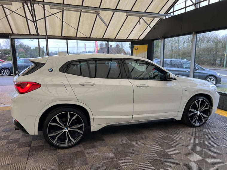 Finished in a pristine Alpine White, the Bmw X2 exudes a sense of elegance and sophistication that is sure to turn heads wherever you go. Its sleek silhouette is complemented by the striking 20-inch M Light Double Spoke alloy wheels, ensuring both style and safety on every journey.