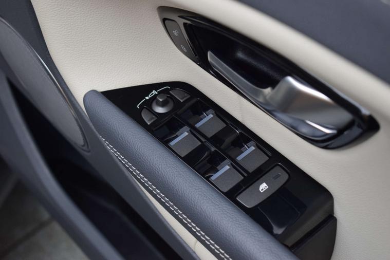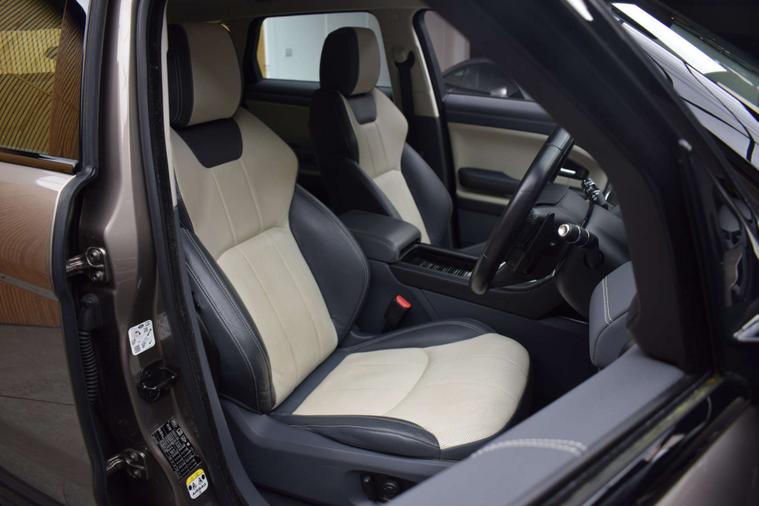 The specification consists of Full 2 tone cream & navy leather sports trim, Heated seats, Selectable driving mode, Hill decent, Traction control, Rapid de-ice windscreen, Digital climate control, Air conditioning, Colour touch screen multi media system, Satellite navigation, Bluetooth, DAB, USB, Leather bound multi function steering wheel, Voice command, Paddle shift, Cruise control, Speed limiter, Lane keep assist, Electric adjustable folding mirrors, Remote central locking, Keyless go, Electric windows, Auto lights, Auto wipers, Front & Rear parking sensors and 18" Metallic Silver Multi-Spoke alloy wheels.