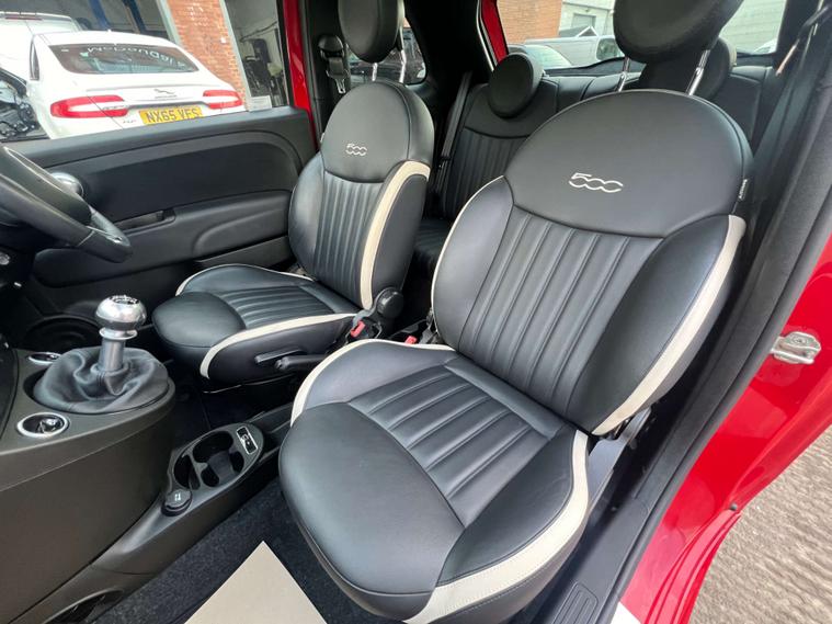 Presented to you by Tyne Vehicle Buyer we Have an excellent example of a Fiat 500 , finished in Pasodoble Red with Full Black Leather & Cream interior.