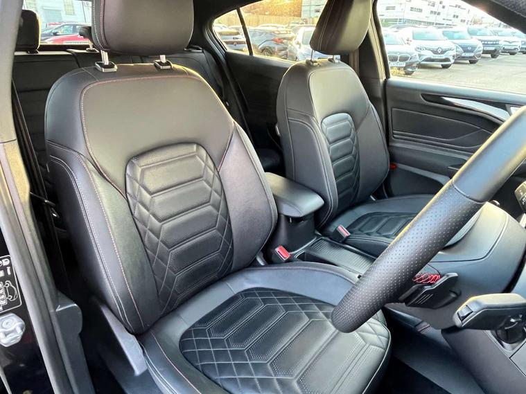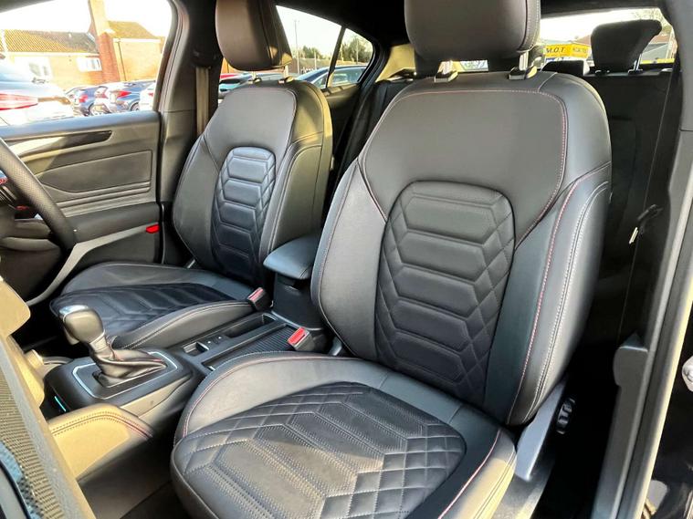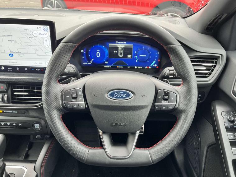 Finished in a striking Agate Black, the Ford Focus exudes an air of elegance and modernity. The Full Sensico interior in Ebony, accented with eye-catching Red Stitching, adds a touch of luxury and sportiness to your driving experience. Every detail has been meticulously crafted to ensure you travel in comfort and style.